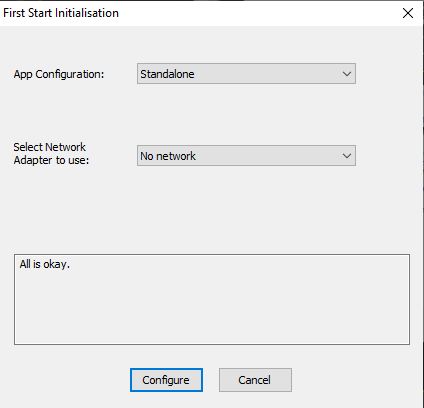 Towards the end of the installation process, on the “First start initialization” window go to the “Select network adapter use” drop down menu and choose your IP for easier remote control options. Press ‘Configure’ to continue.
