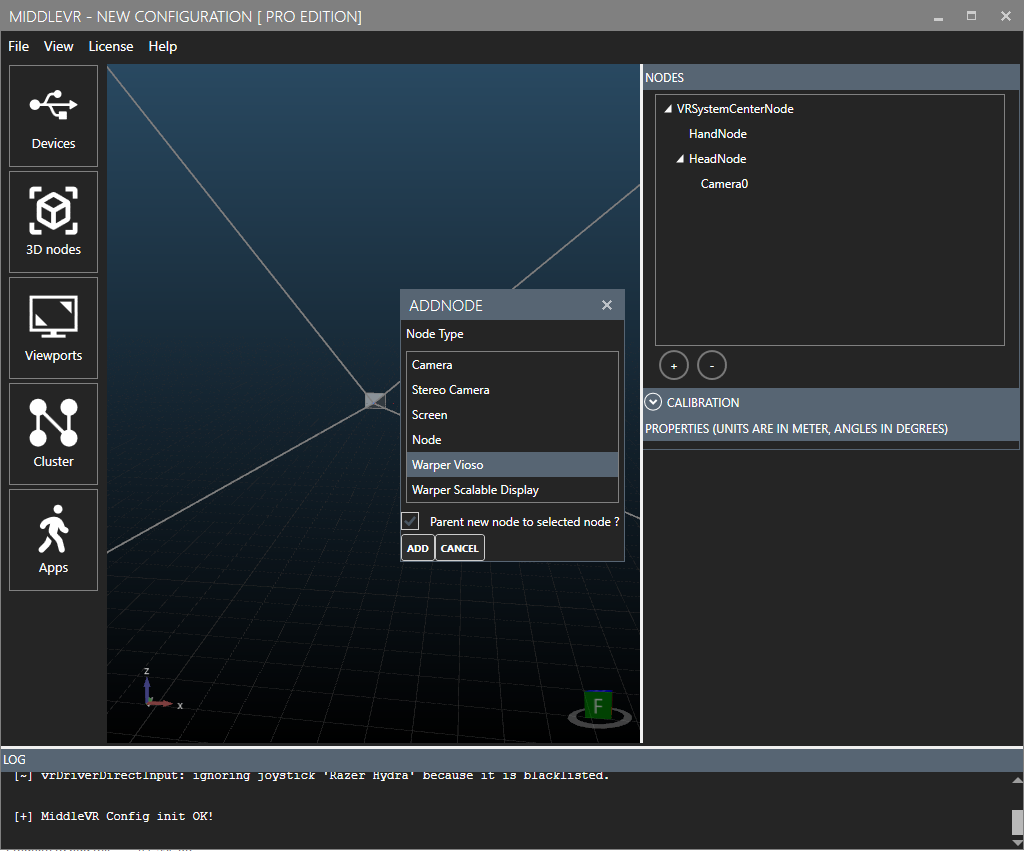 - Open MiddleVRConfig.exCreate a new Configuration: File > New
