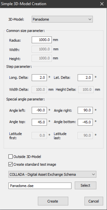 Next, in the “simple 3D model creation” window, you’ll find different parameters to generate your shape: