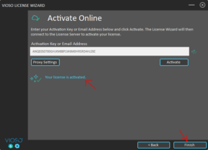 - After an order is placed, the activation key is created by VIOSO according to the order specification and transmitted to you typically via E-mail.